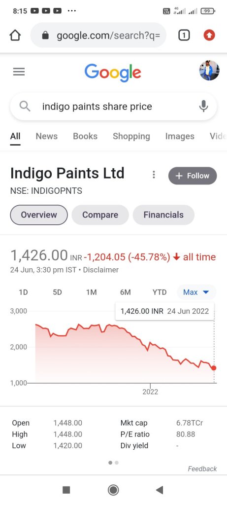 1. Indigo paints :- CMP :-1424 rupees, Target price:-2010 rupees; one year Target :- 41% gain;