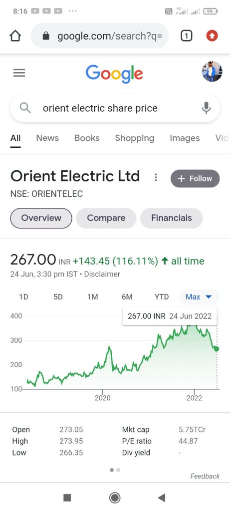 2. Orient electric:- CMP :-263 rupees, Target price:- 460 rupees, one year Target :- 75%,